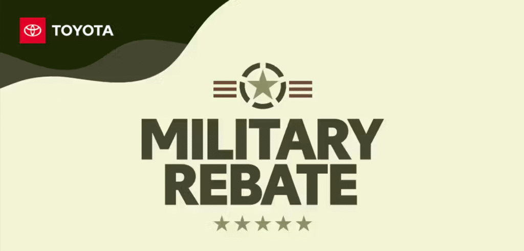 Inspired by your courage and commitment, Toyota is offering a $500 rebate to eligible U.S. military personnel.* This rebate can be used toward any new Toyota vehicle purchased or leased through your local dealer and through Toyota Financial Services.